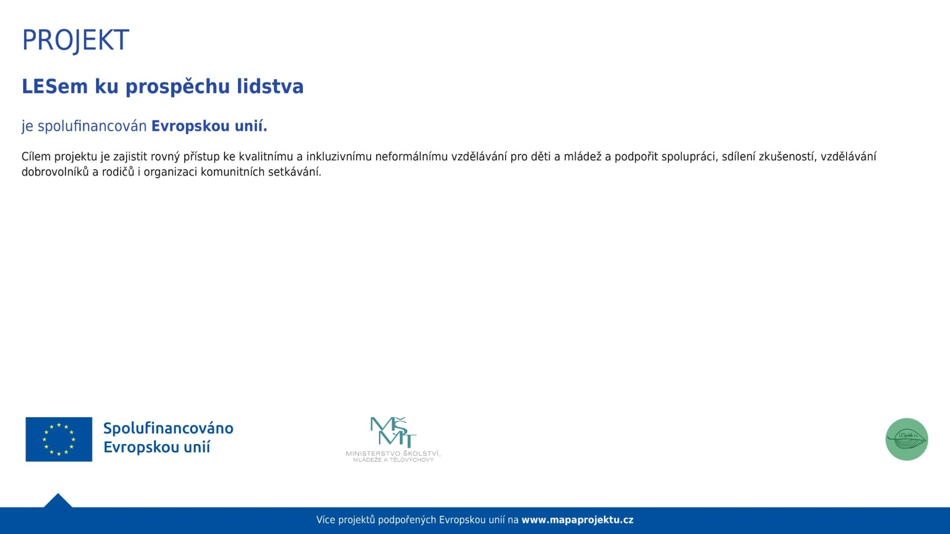 Náš projekt LESem ku prospěchu lidstva získal podporu a je spolufinancován Evropskou unií.